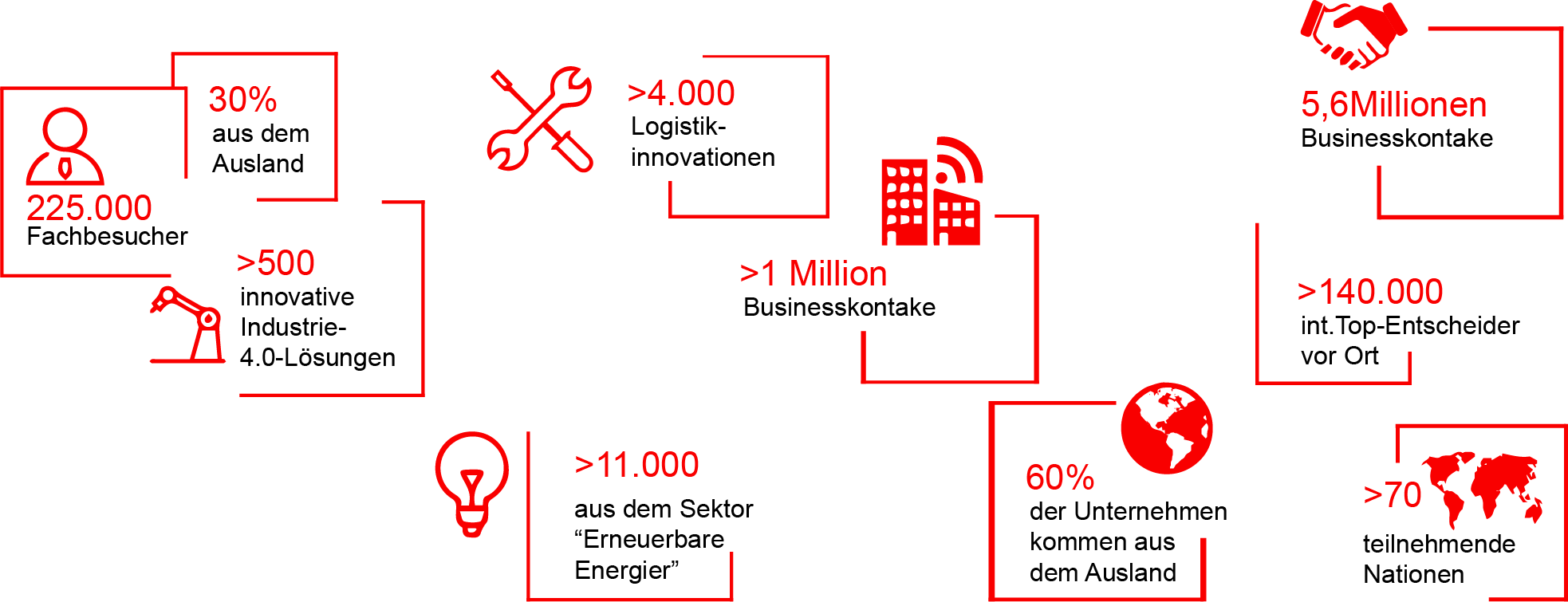 Die HANNOVER MESSE ist das weltweit wichtigste Technologieereignis. Rund 6.500 Aussteller aus über 70 Ländern präsentieren auf der HANNOVER MESSE die maßgebenden Themen Industrieautomation, Energietechnologien, Antriebs- und Fluidtechnik, Mobilität, Zulieferung, Zukunftstechnologien und Nachwuchs.